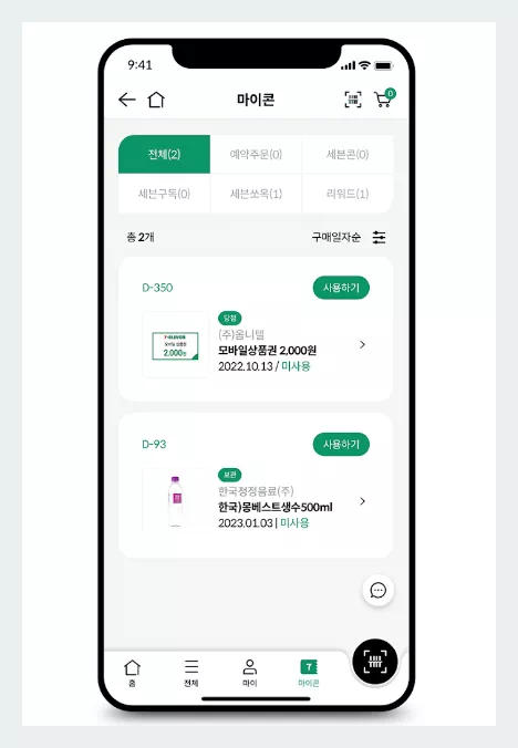 • 바코드 스캔: 기프티콘의 바코드를 매장 직원에게 보여주면 결제가 완료됩니다.
